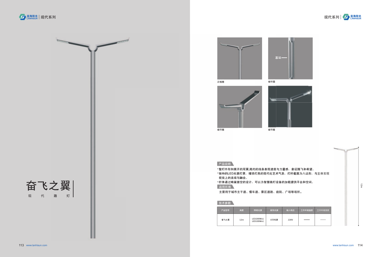 1、高度為6-16米; 2、光源為2組LED光源,色溫2500-6500K,每個光源功率為60-300W; 3、LED驅動電源壽命可達五年; 4、整體熱鍍鋅噴塑,保證燈桿15年不生銹; 5、可以根據使用地區的地域文化、產業特點等進行文化定制;